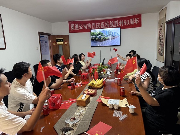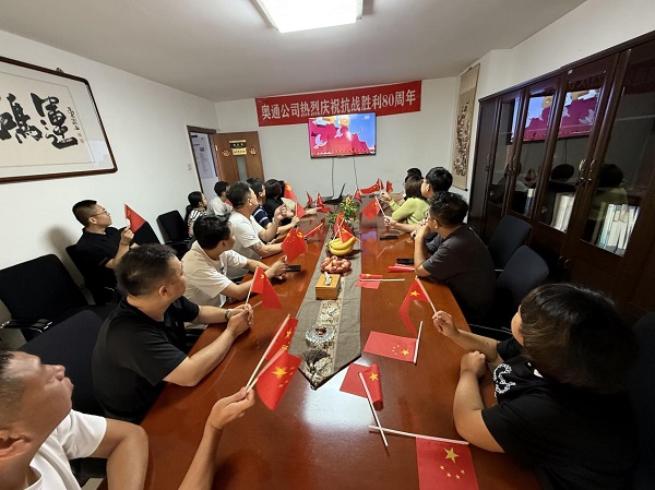 九月的金辉普照神州,值此抗战胜利80周年纪念日,奥通公司全体同仁共聚一堂,怀着无比崇敬的心情观看了庄严的阅兵盛典。作为新时代的奋斗者,我们不仅是钢材贸易行业的从业者,更是伟大抗战精神的传承者和弘扬者。
