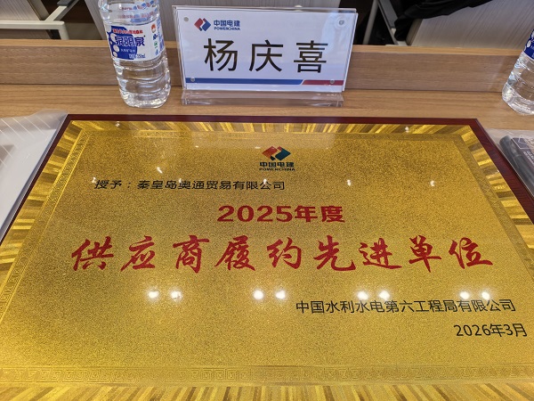 中国电建集团中国水利水电第六工程局有限公司(以下简称“水电六局”)2026年度供应链年会暨合作共赢推进会在辽宁沈阳隆重召开。会上,秦皇岛奥通贸易有限公司(以下简称“奥通公司”)凭借卓越的履约能力、优质的商业信誉和高效的服务水平,从众多合作伙伴中脱颖而出,荣获水电六局2025年度“供应商履约先进单位”称号。这一荣誉的取得,标志着奥通公司在供应链协同与战略合作领域的综合实力再次获得行业龙头企业的充分肯定。
